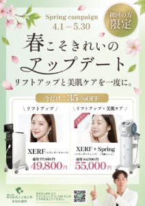 痛みやダウンタイムなし、大人気リフトアップXERFのキャンペーンを開始しました!