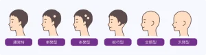 - ✔ 全頭型(Alopecia Totalis): 頭部全体の髪が抜け落ちる。