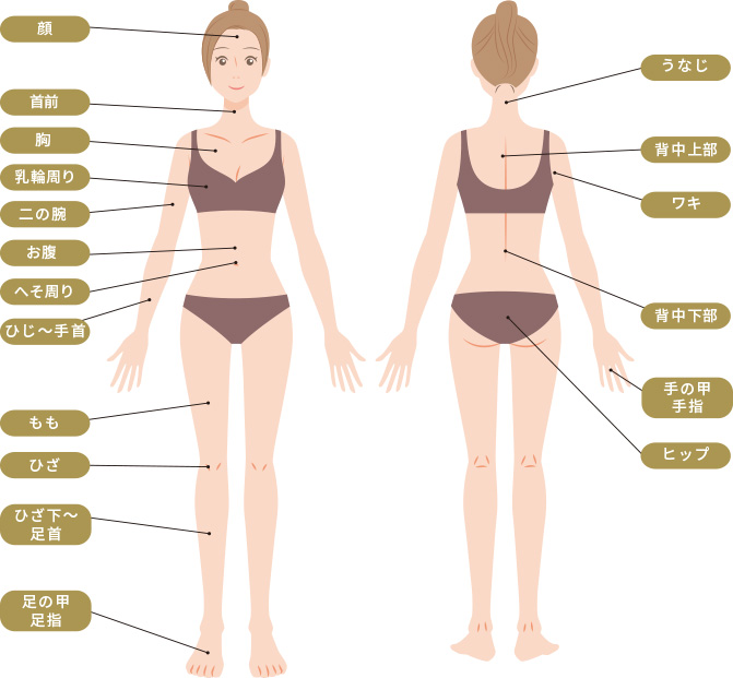 全身脱毛の部位一覧