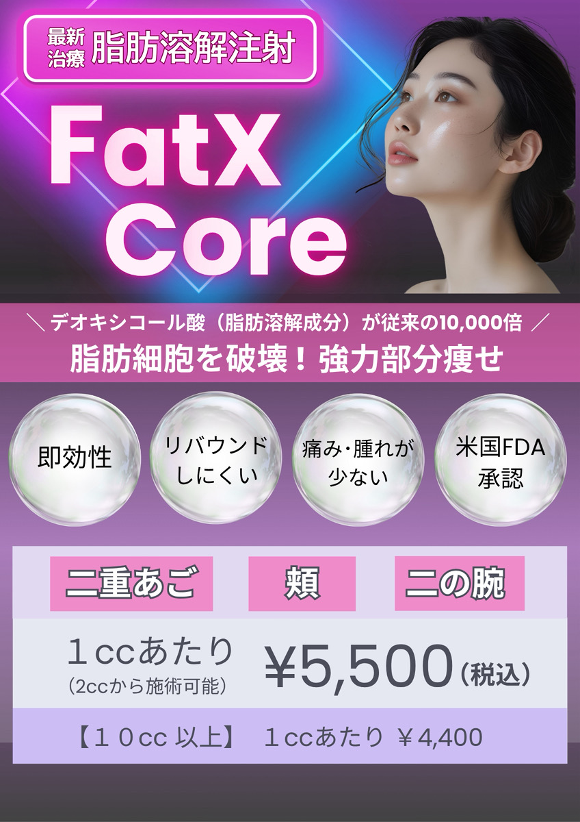 脂肪溶解注射は、気になる部分の脂肪を注射で少しずつ減らしていく部分痩せ治療です。専用の薬剤を皮下に注入することで、脂肪細胞を分解・排出しやすくし、自然にボリュームダウンを図ります。ダイエットでは落としづらいフェイスラインや二の腕などの部分的な脂肪に適しており、メスを使わずにすっきりとした印象を目指せるのが特徴です。施術は短時間で終了し、ダウンタイムも少ないため、忙しい方にもおすすめです。