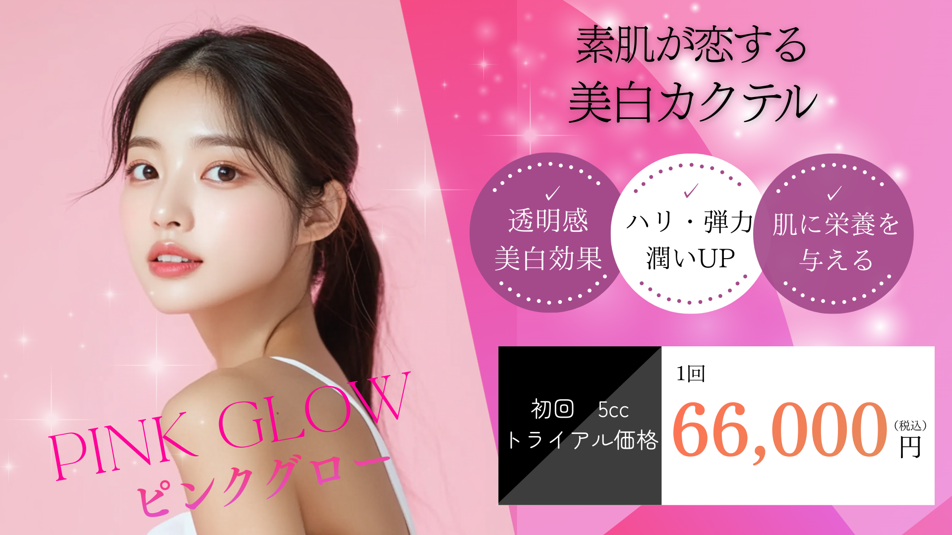 ピンクグロー(PINK GLOW / ピンク注射)は、韓国発のペプチド、グルタチオンを配合した先進的な美白カクテルです。